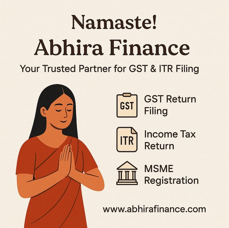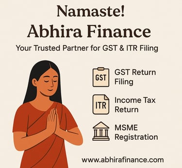 At Abhira Finance, we bring you reliable and accurate GST & ITR filing services—now at a price everyone can afford.